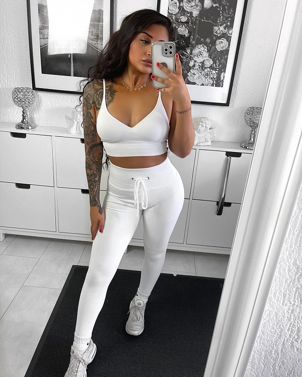 Sportanzug mit unserem Intelligenten Anti-Cellulite-Stoff © neu erfunden, um das Auftreten von Cellulite zu glätten und zu reduzieren.